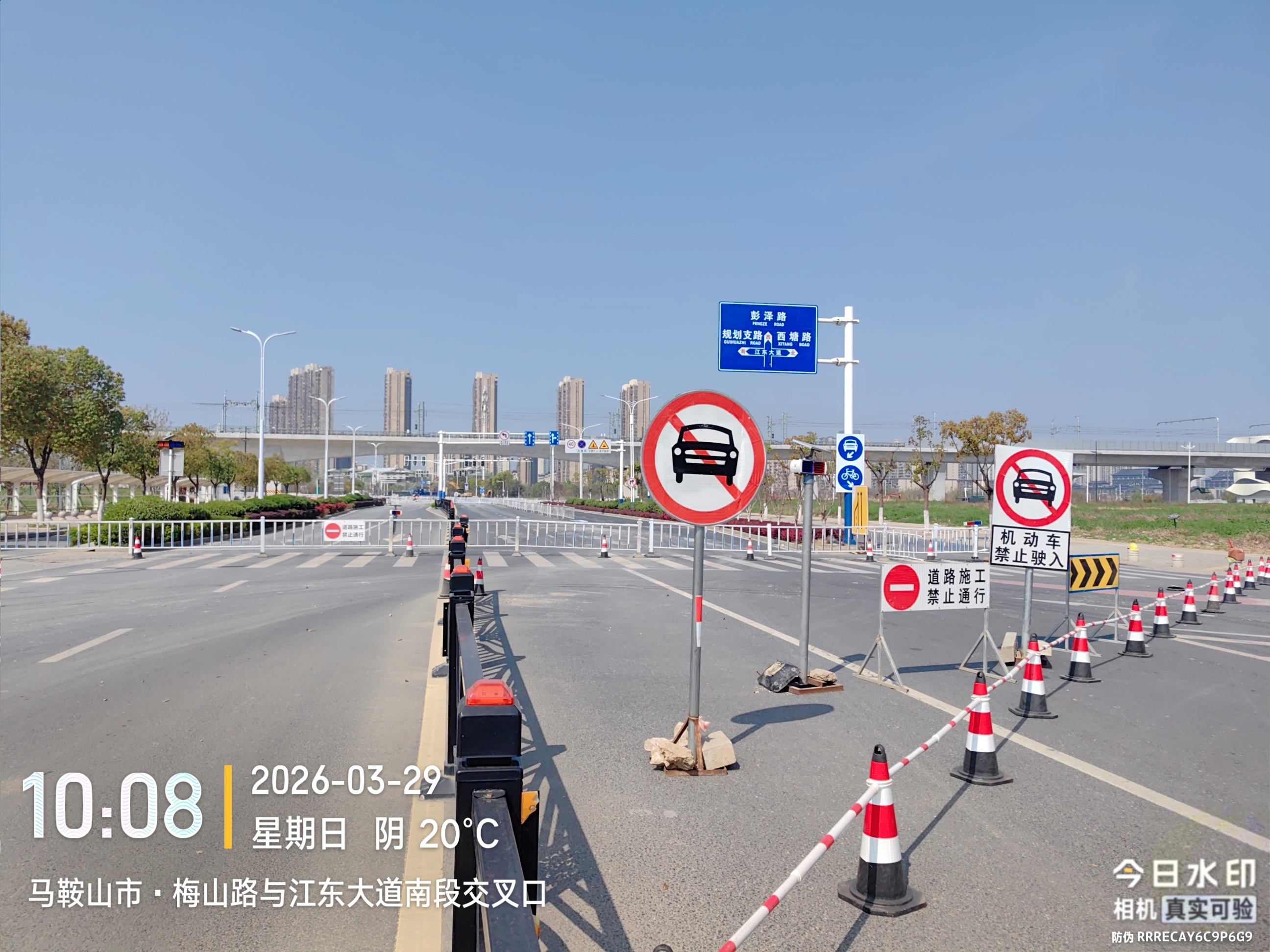 梅山路与江东大道交叉路口封闭施工